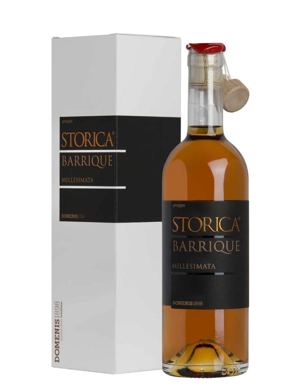 DEGUSTAZIONE: il lungo invecchiamento dà a questa grappa un'impronta sensoriale unica. Il suo colore estremamente carico preannuncia quella potenza aromatica e quella morbidezza che si ritrovano poi durante l'assaggio. È un distillato asciutto ed austero, che non indulge in note stucchevoli: il profilo aromatico è dominato dalle spezie (chiodi di garofano, pepe, noce moscata, anice, liquirizia, tabacco) e dai sentori dati dalla barrique. Non vengono però coperti i sentori della materia prima utilizzata che invece si accompagnano a note di prugna, canditi e dalla frutta secca come la nocciola e la mandorla. Il tutto in un insieme estremamente franco.