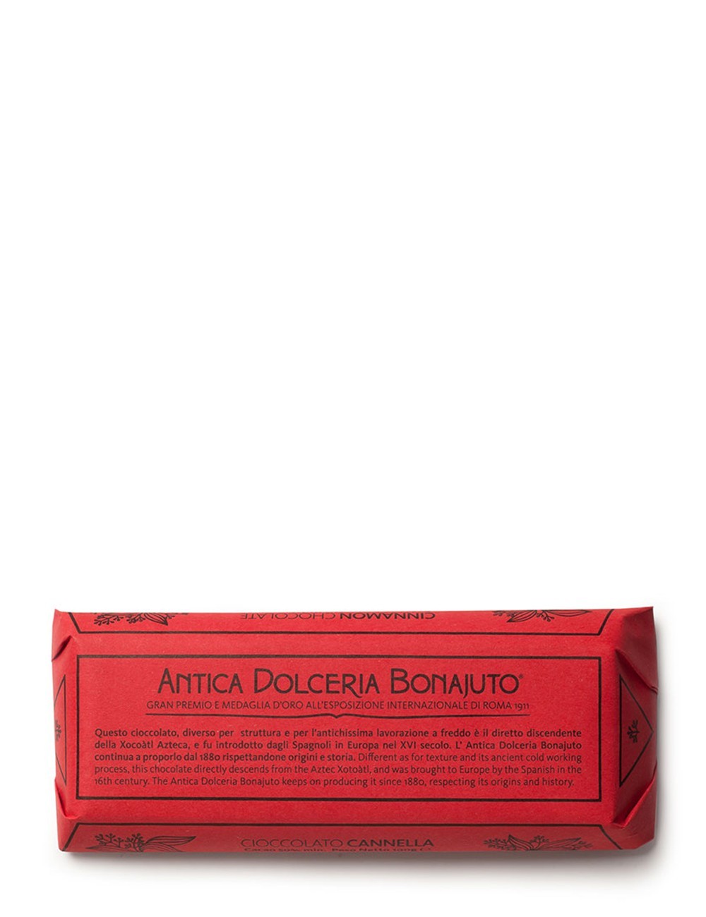 La tavoletta alla Cannella, insieme alla Vaniglia, è una delle due tavolette nel tradizionale formato da 100g. Sono questi i gusti classici, i primi due ad essere storicamente prodotti dall’Antica Dolceria Bonajuto. Il sapore e il profumo della cannella si abbina magistralmente al cacao. Come per la Vaniglia, la tavoletta alla Cannella, è tra le tavolette più dolci e quella che conservala storica confezione che in questo caso è di colore rosso