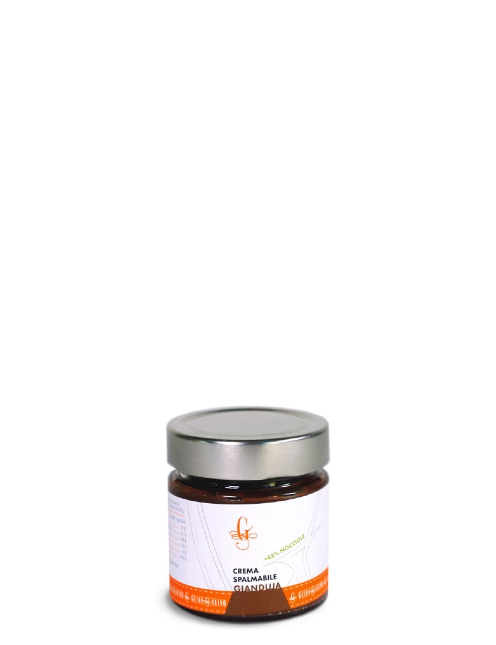 La Crema Spalmabile di Cioccolato Gianduja contiene il 45% di Nocciola Piemonte IGP, Cacao, Olio di Nocciola e Burro di cacao.