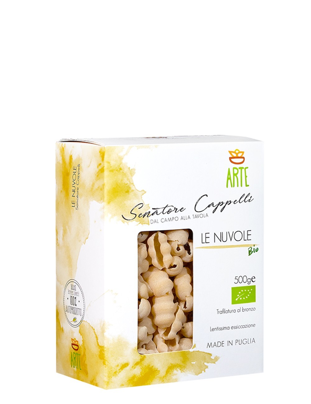 Pasta di semola di grano duro biologico Senatore Cappelli prodotta sui campi aziendali, trafilatura al bronzo e lentissima essiccazione sotto i 32° C. Sarai avvolto dal sapore tipico e caratteristico della vera pasta italiana.