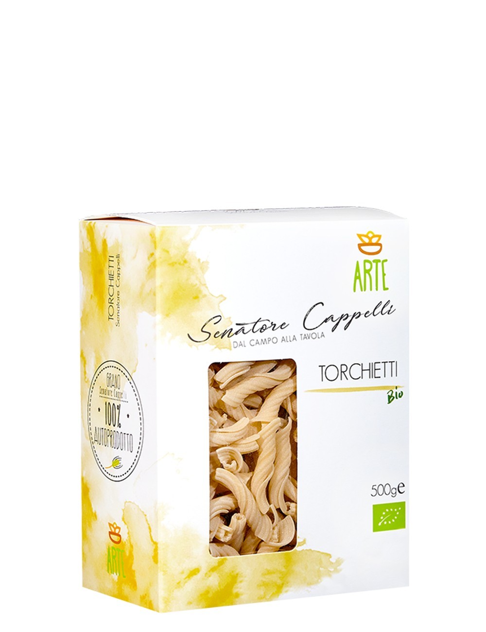 Pasta di semola di grano duro biologico Senatore Cappelli prodotta sui campi aziendali, trafilatura al bronzo e lentissima essiccazione sotto i 32° C. Sarai avvolto dal sapore tipico e caratteristico della vera pasta italiana.