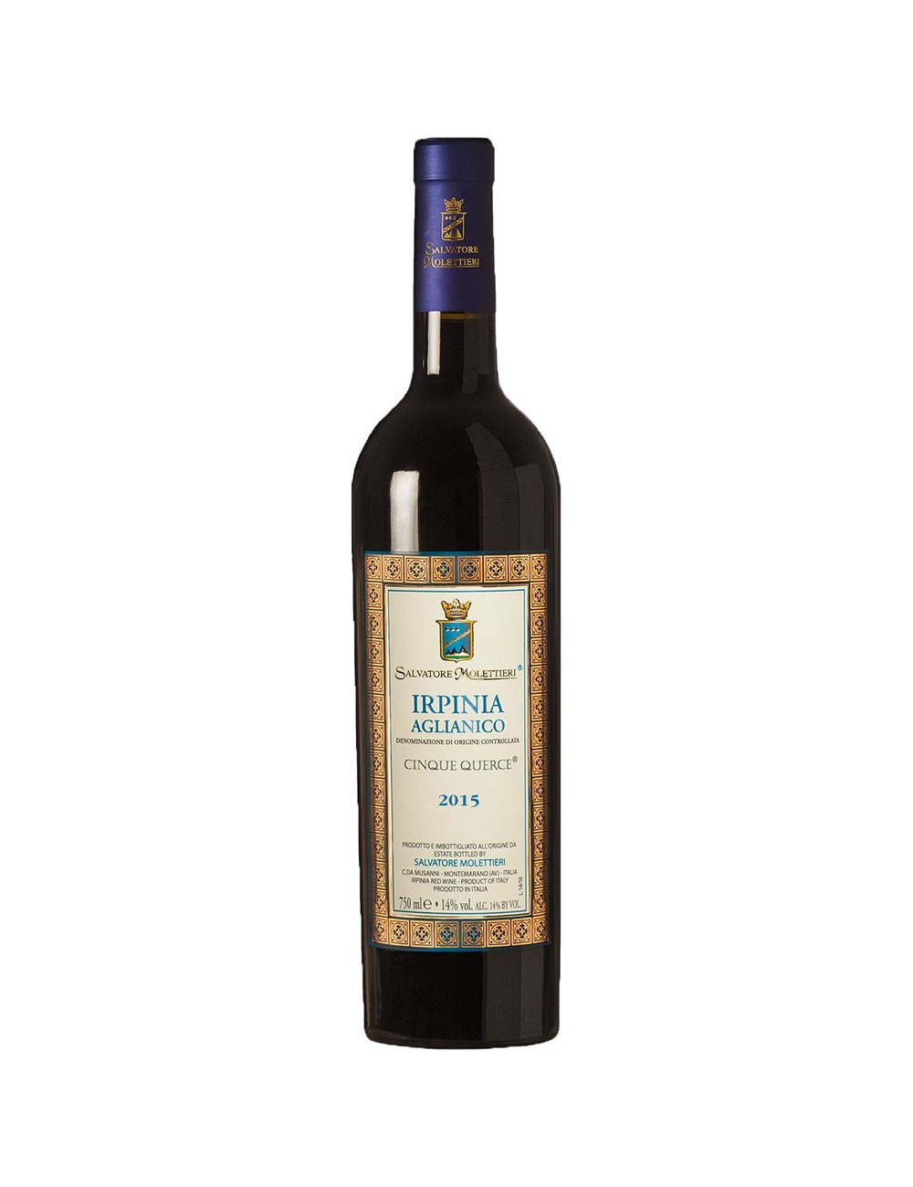 Caratteristiche organolettiche: di colore rosso rubino, intenso, l’Irpinia DOC Aglianico Cinque Querce si offre al naso intenso, con sentori di frutti rossi, spezie ed eleganti sfumature balsamiche e di chiodi di garofano e cacao. Al gusto è caldo, pieno, con buona morbidezza, lunga e complessa la persistenza aromatica, con la fitta trama tannica. La degustazione lascia in bocca un lungo ricordo di frutta matura e torrefazione. Un vino di grande carattere, da accompagnare a cacciagioni, carni rosse e a formaggi di media stagionatura.